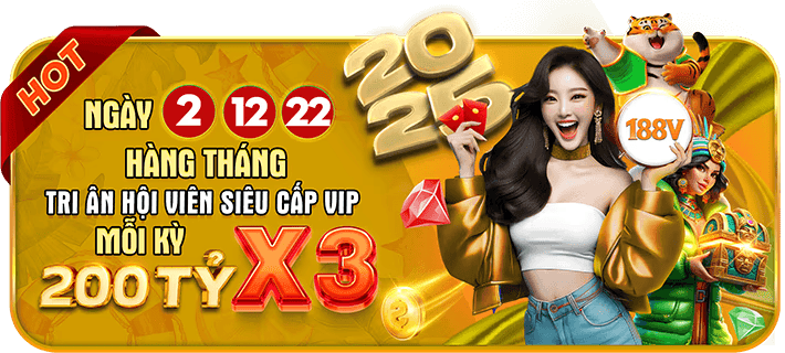 Vào các ngày 2, 12 và 22 mỗi tháng, nhà cái 188v1 .com phát thưởng tất cả hội viên phần quà may mắn ngẫu nhiên, với tổng giải thưởng lên tới 200 tỷ đồng. Tham gia nhận thưởng ngay!